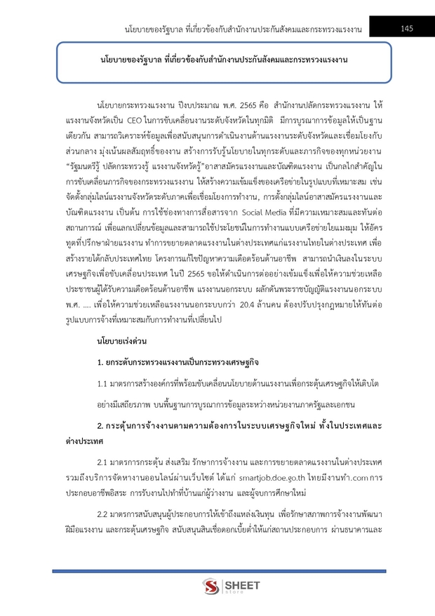 – นโยบายของรัฐบาลที่เกี่ยวข้องกับสำนักงานประกันสังคมและกระทรวงแรงงาน