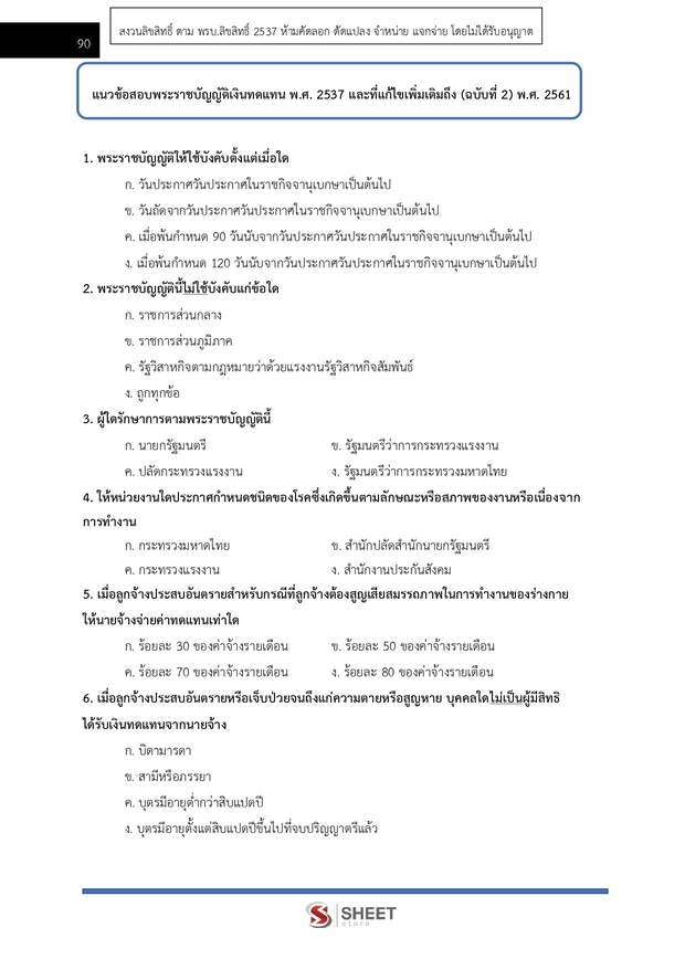 – แนวข้อสอบพระราชบัญญัติเงินทดแทน พ.ศ. 2537 และที่แก้ไขเพิ่มเติมถึง (ฉบับที่ 2) พ.ศ. 2561