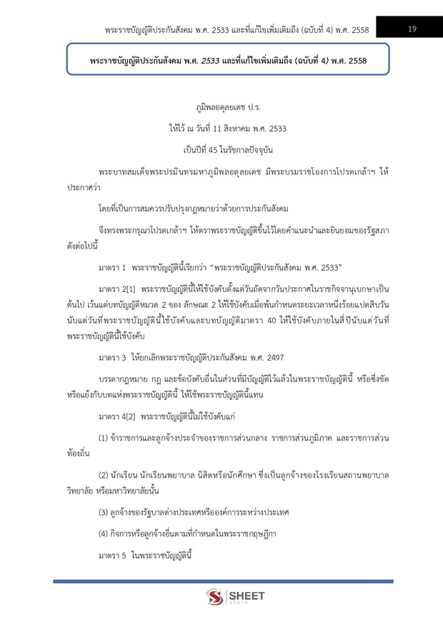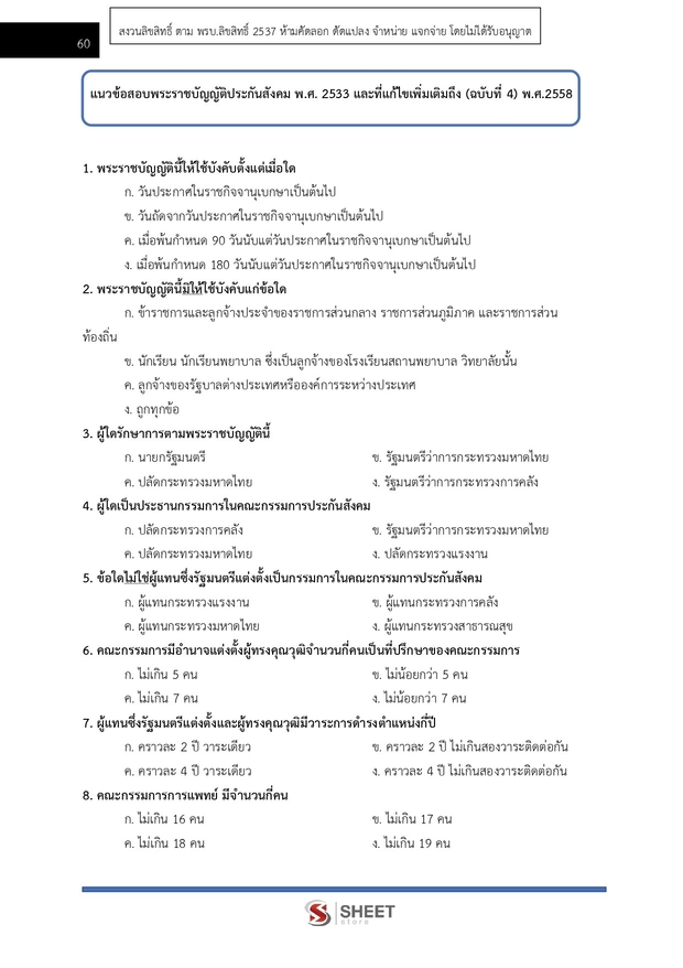 – แนวข้อสอบพระราชบัญญัติประกันสังคม พ.ศ. 2533 และที่แก้ไขเพิ่มเติมถึง (ฉบับที่ 4) พ.ศ.2558