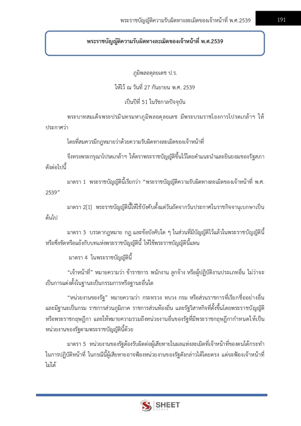 – พระราชบัญญัติความรับผิดทางละเมิดของเจ้าหน้าที่ พ.ศ.2539