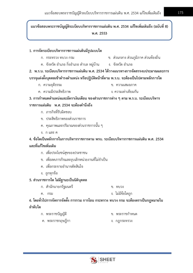 – แนวข้อสอบพระราชบัญญัติระเบียบบริหารราชการแผ่นดิน พ.ศ. 2534 และที่แก้ไขเพิ่มเติมถึง (ฉบับที่ 8) พ.ศ.2553