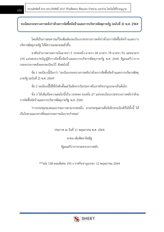 – สรุปสาระสำคัญระเบียบกระทรวงการคลังว่าด้วยการจัดซื้อจัดจ้างและการบริหารพัสดุภาครัฐ พ.ศ.2560