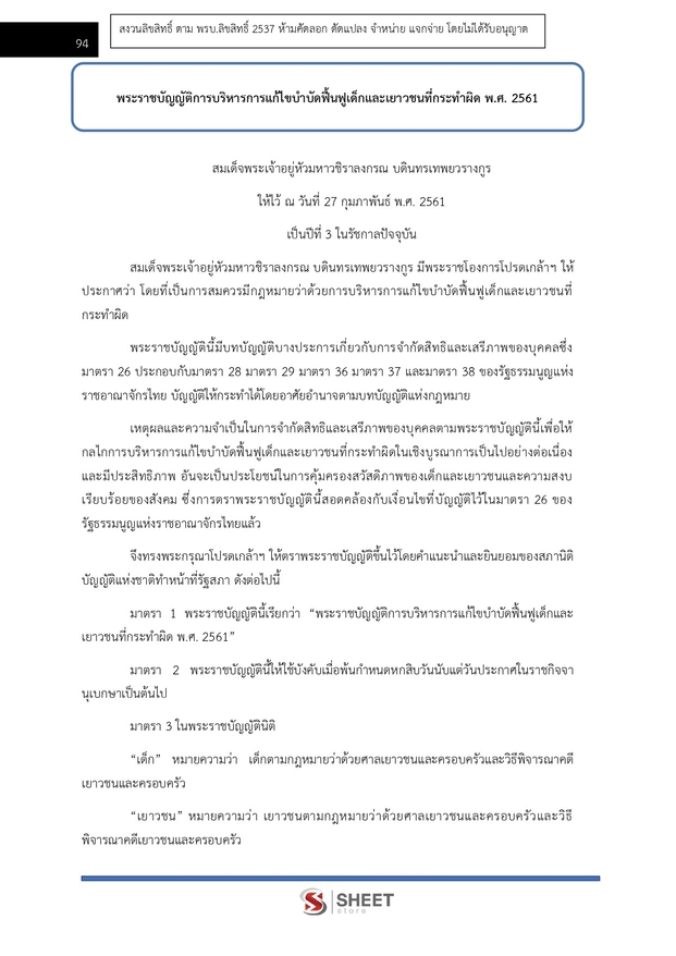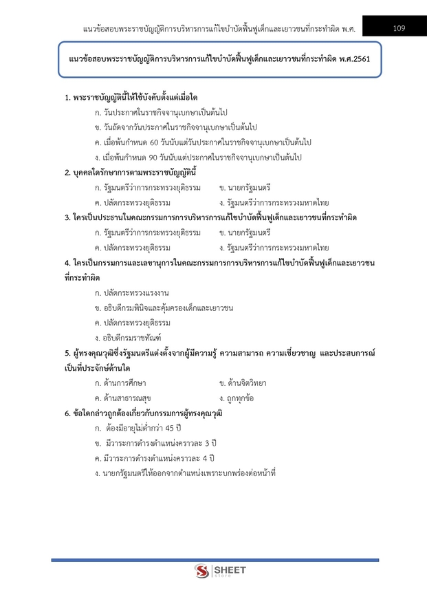 – แนวข้อสอบพระราชบัญญัติการบริหารการแก้ไขบำบัดฟื้นฟูเด็กและเยาวชนที่กระทำผิด พ.ศ. 2561