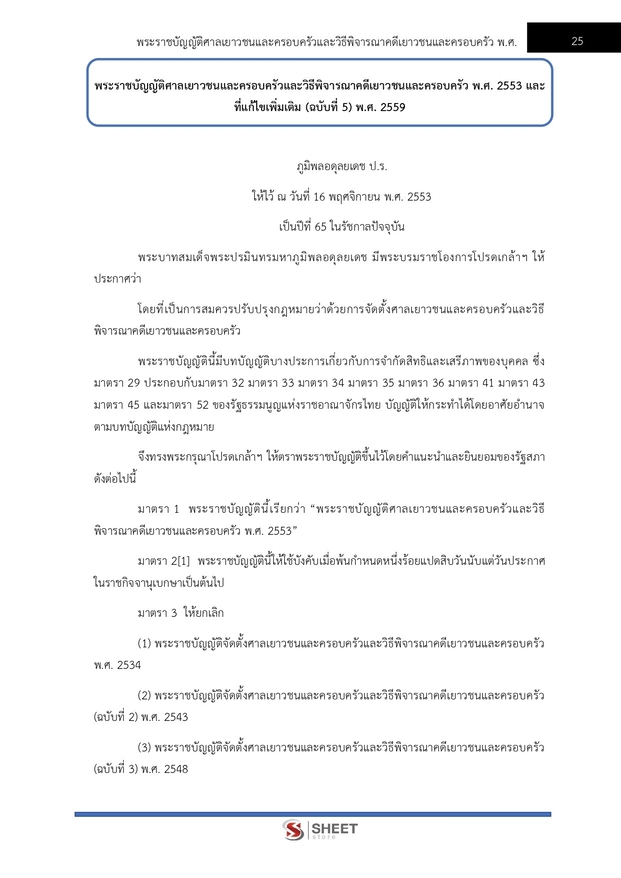 – แนวข้อสอบพระราชบัญญัติศาลเยาวชนและครอบครัวและวิธีพิจารณาคดีเยาวชนและครอบครัว พ.ศ. 2553 และที่แก้ไขเพิ่มเติม (ฉบับที่ 5) พ.ศ. 2559