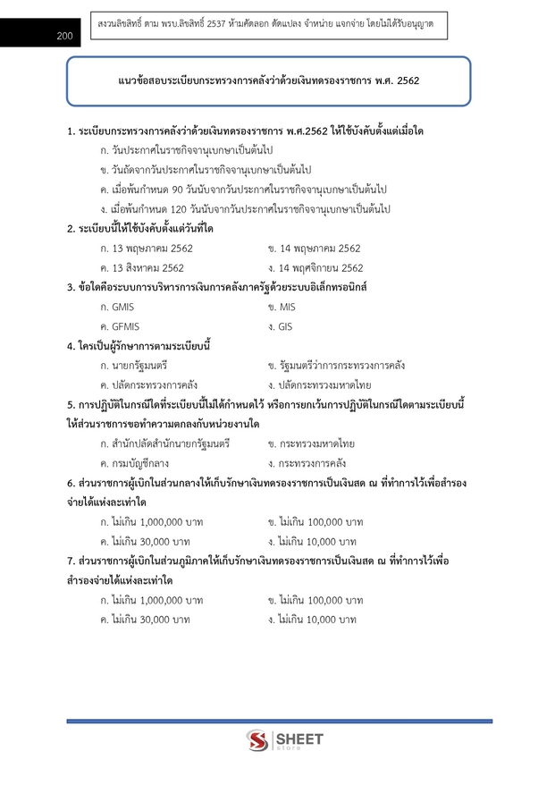 – แนวข้อสอบระเบียบกระทรวงการคลังว่าด้วยเงินทดรองราชการ พ.ศ. 2562