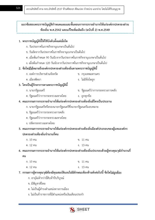 – แนวข้อสอบพระราชบัญญัติกำหนดแผนและขั้นตอนการกระจายอำนาจให้แก่องค์กรปกครองส่วนท้องถิ่น พ.ศ. 2542 และที่แก้ไขเพิ่มเติมถึง (ฉบับที่ 2) พ.ศ. 2549