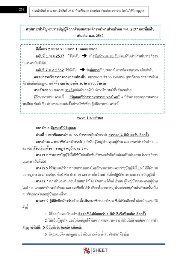 – แนวข้อสอบพระราชบัญญัติสภาตำบลและองค์การบริหารส่วนตำบล พ.ศ. 2537 และที่แก้ไขเพิ่มเติม พ.ศ. 2562