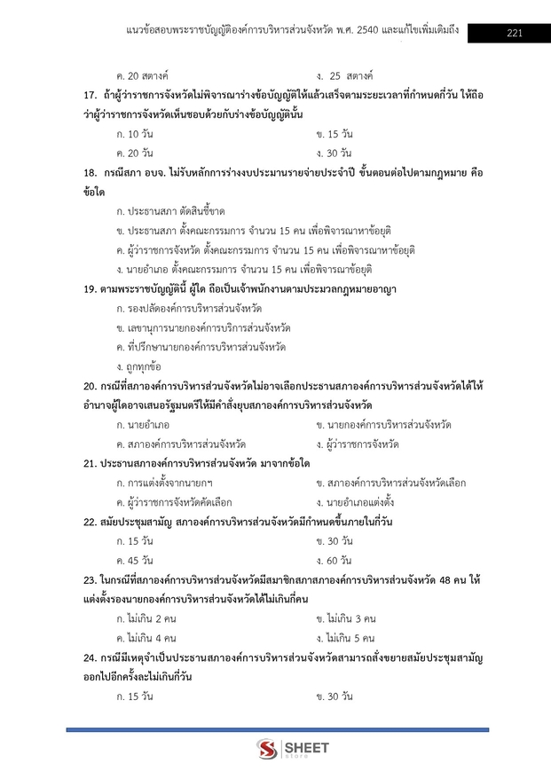 – แนวข้อสอบพระราชบัญญัติองค์การบริหารส่วนจังหวัด พ.ศ. 2540 และที่แก้ไขเพิ่มเติมถึง (ฉบับที่ 5) พ.ศ. 2562