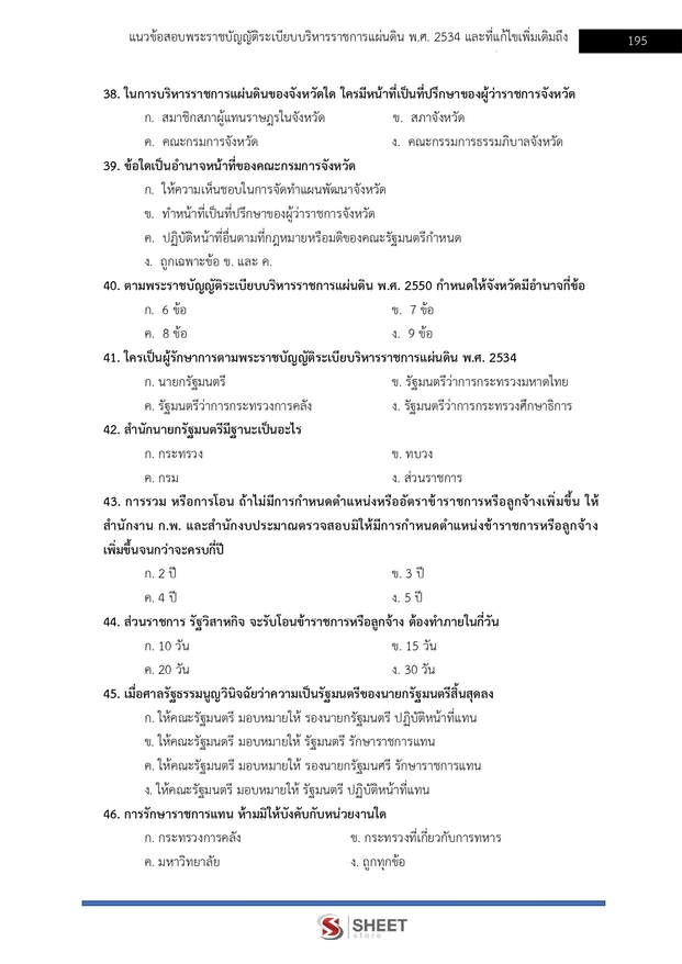 – แนวข้อสอบพระราชกฤษฎีกาว่าด้วยหลักเกณฑ์และวิธีการบริหารบ้านเมืองที่ดี พ.ศ. 2546 และที่แก้ไขเพิ่มเติม พ.ศ. 2562