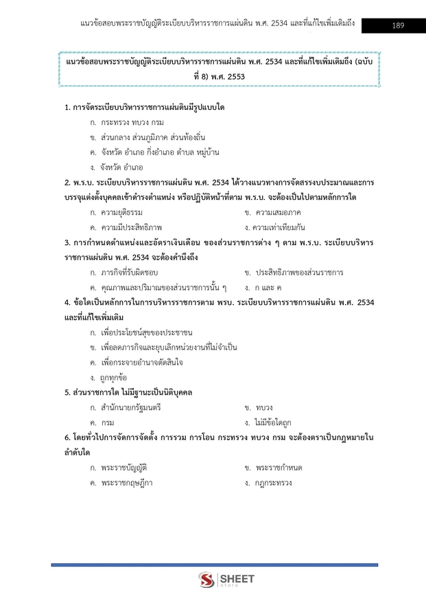 – แนวข้อสอบพระราชบัญญัติระเบียบบริหารราชการแผ่นดิน พ.ศ. 2534 และที่แก้ไขเพิ่มเติม (ฉบับที่ 8) พ.ศ. 2553