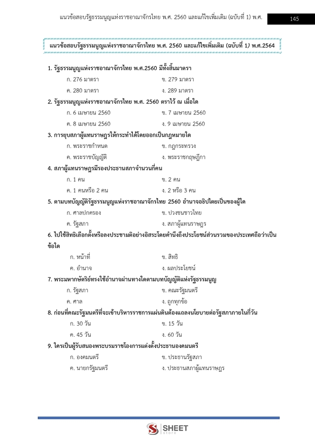– แนวข้อสอบรัฐธรรมนูญแห่งราชอาณาจักรไทย พ.ศ. 2560 และที่แก้ไขเพิ่มเติม (ฉบับที่ 1) พ.ศ. 2564