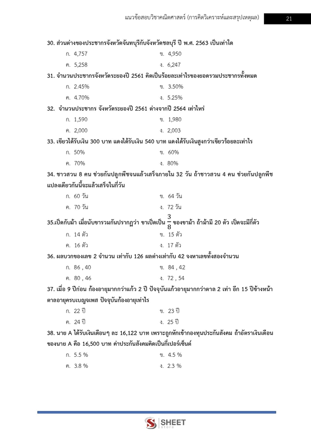 – แนวข้อสอบวิชาคณิตศาสตร์ วิเคราะห์และสรุปเหตุผล เฉลยพร้อมวิธีทำ