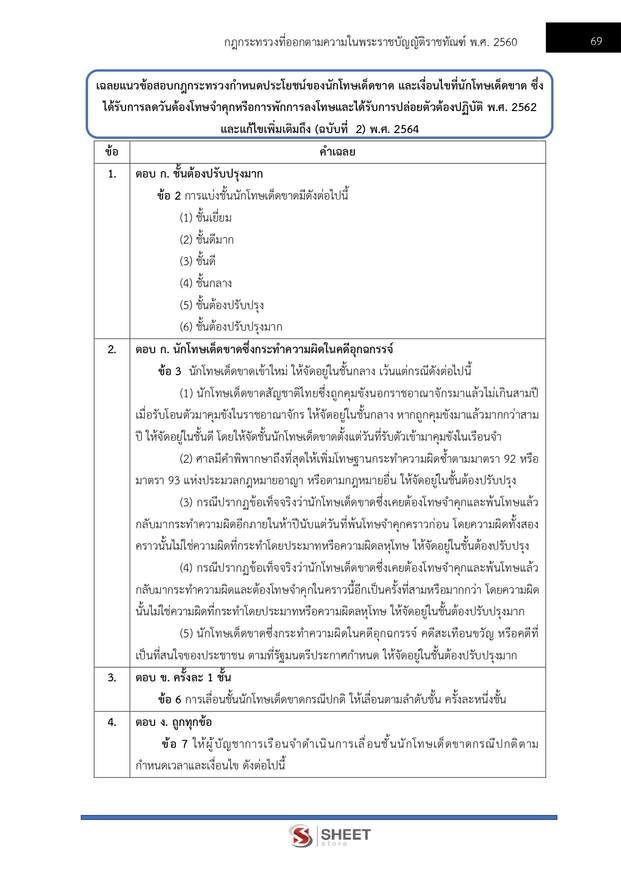 – แนวข้อสอบกฎกระทรวงที่ออกตามความในพระราชบัญญัติราชทัณฑ์ พ.ศ. 2560