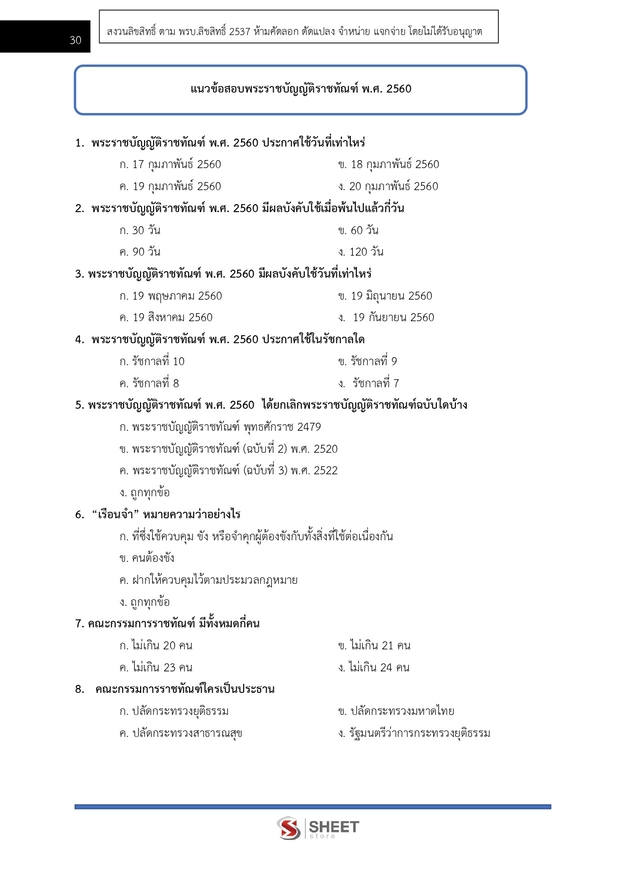 – แนวข้อสอบพระราชบัญญัติราชทัณฑ์ พ.ศ. 2560
