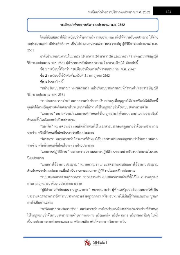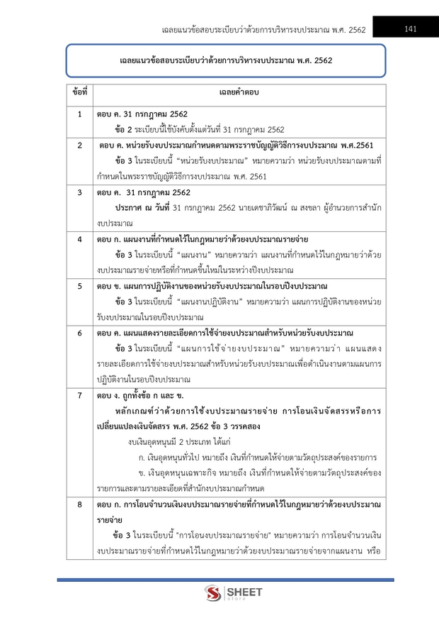 – แนวข้อสอบระเบียบว่าด้วยการบริหารงบประมาณ พ.ศ. 2562