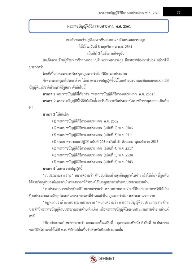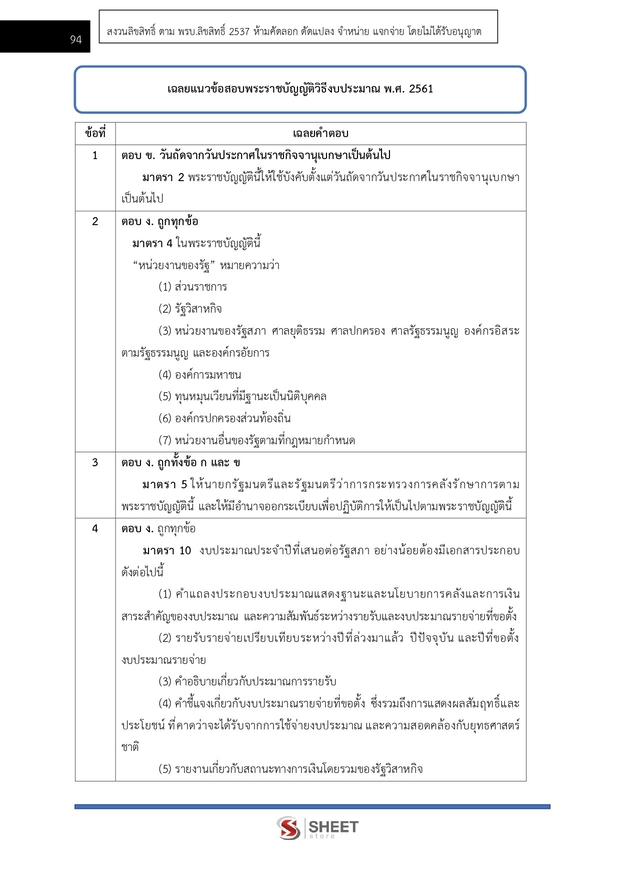– แนวข้อสอบพระราชบัญญัติวิธีการงบประมาณ พ.ศ. 2561