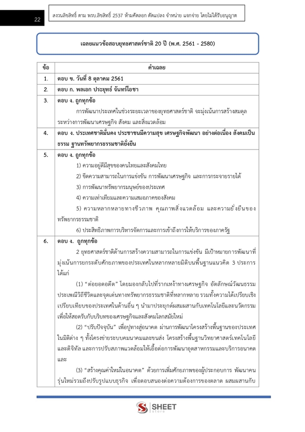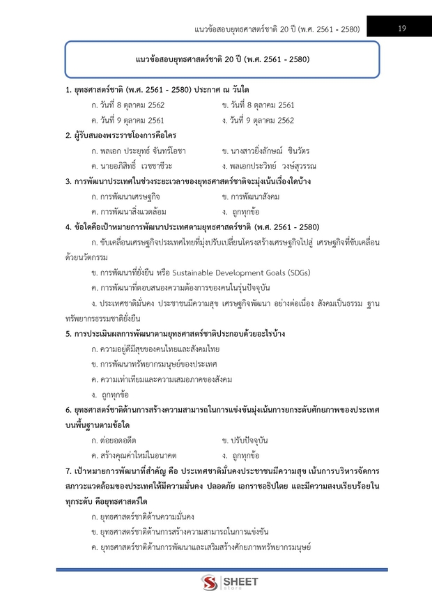 – แนวข้อสอบยุทธศาสตร์ชาติ 20 ปี (พ.ศ. 2561 – 2580 ฉบับย่อ)