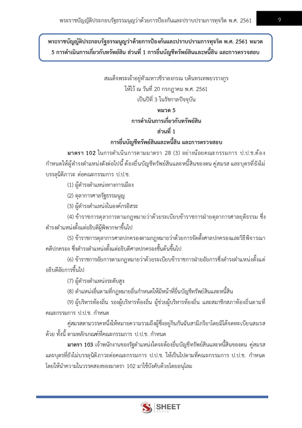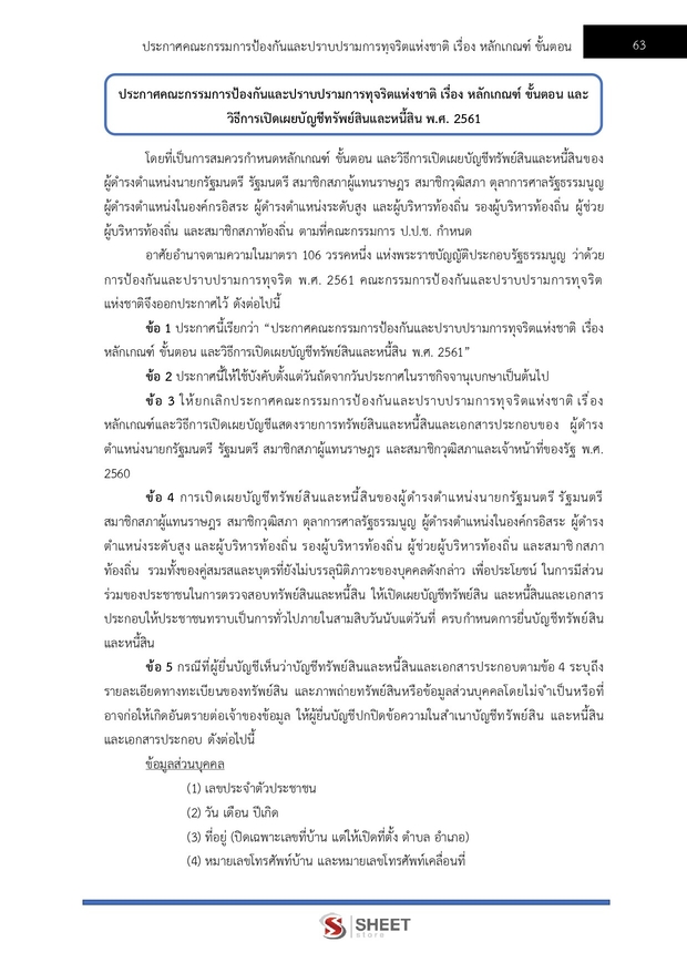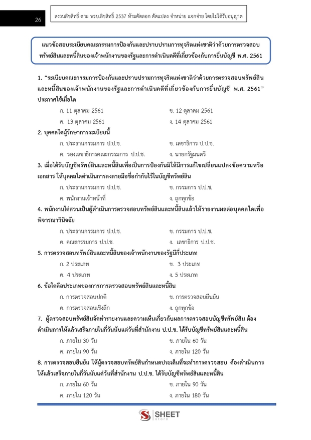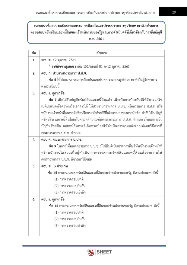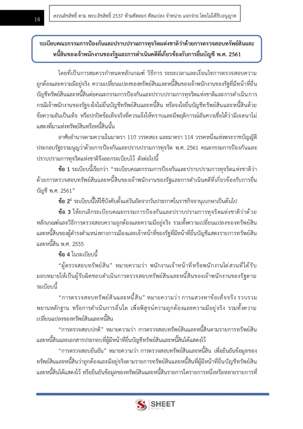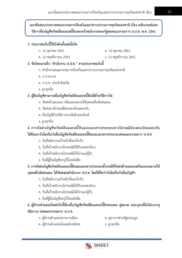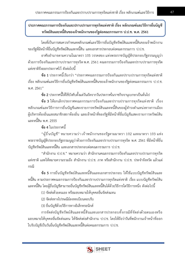 – แนวข้อสอบระเบียบคณะกรรมการป้องกันและปราบปรามการทุจริตแห่งชาติว่าด้วยการตรวจสอบทรัพย์สินและหนี้สินของเจ้าพนักงานของรัฐและการดำเนินคดีที่เกี่ยวข้องกับการยื่นบัญชี พ.ศ. 2561