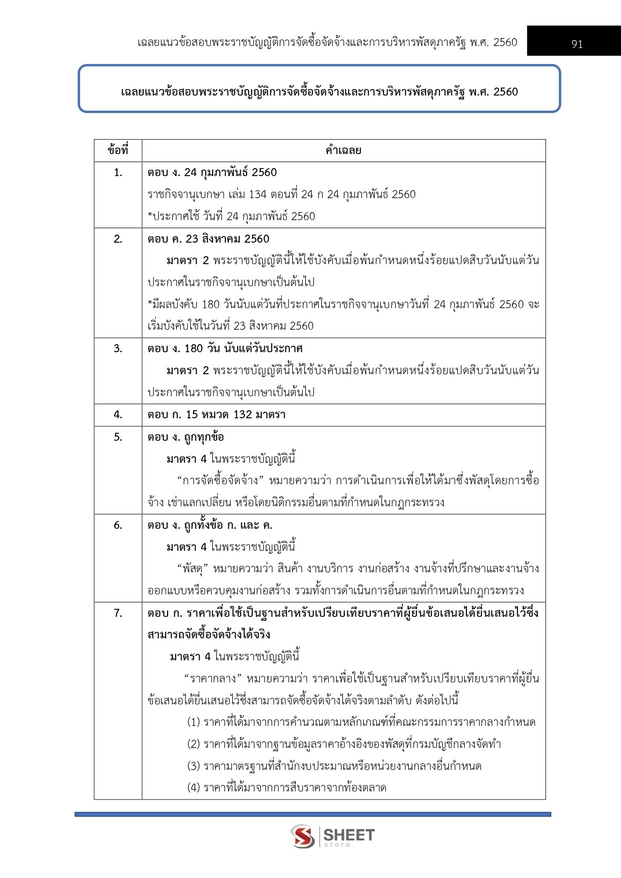 – แนวข้อสอบพระราชบัญญัติการจัดซื้อจัดจ้างและการบริหารพัสดุภาครัฐ พ.ศ. 2560