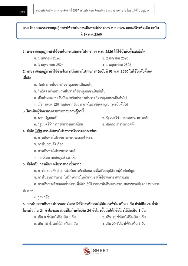 – แนวข้อสอบพระราชกฤษฎีกาค่าใช้จ่ายในการเดินทางไปราชการ พ.ศ. 2526 และที่แก้ไขเพิ่มเติม (ฉบับที่ 9) พ.ศ. 2560
