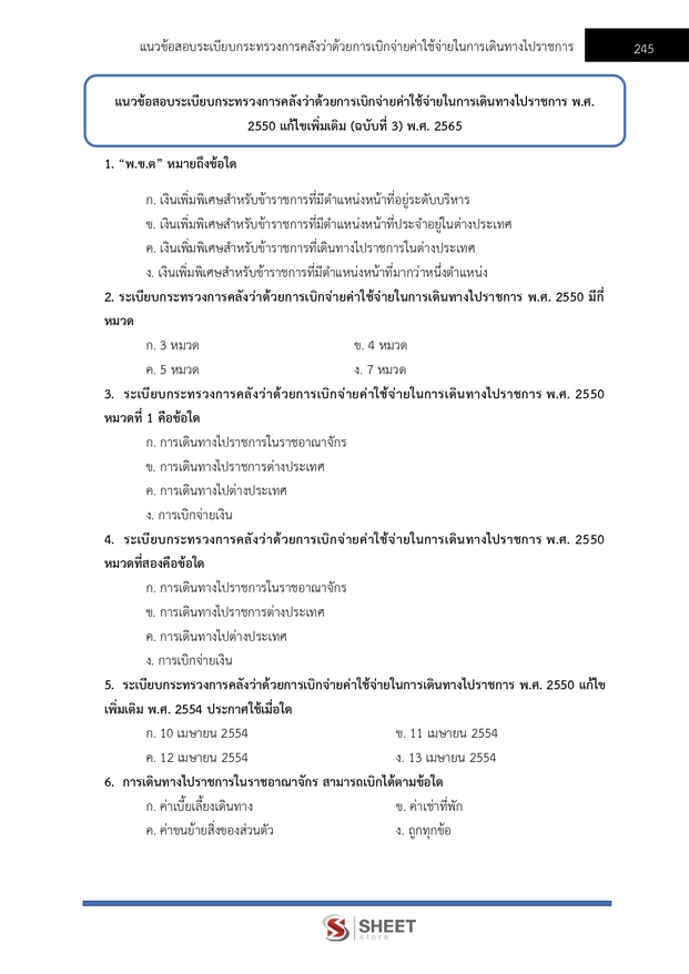 – แนวข้อสอบระเบียบกระทรวงการคลังว่าด้วยการเบิกจ่ายค่าใช้จ่ายในการเดินทางไปราชการ พ.ศ. 2550 และที่แก้ไขเพิ่มเติม (ฉบับที่ 3) พ.ศ. 2565