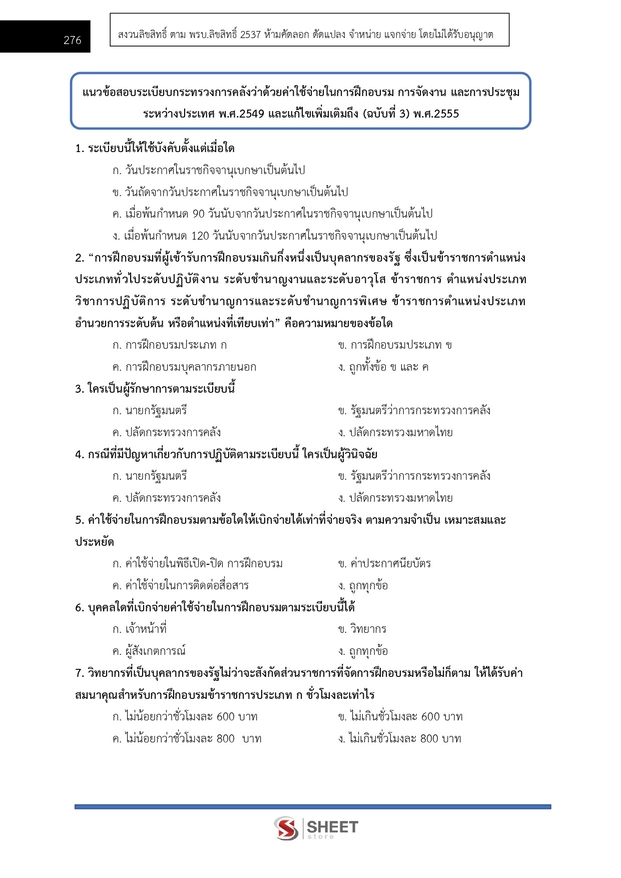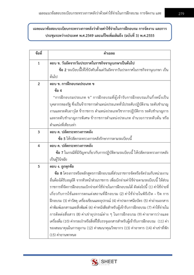 – แนวข้อสอบระเบียบกระทรวงการคลังว่าด้วยค่าใช้จ่ายในการฝึกอบรม การจัดงานและการประชุมระหว่างประเทศ พ.ศ. 2549 และที่แก้ไขเพิ่มเติมถึง (ฉบับที่ 3) พ.ศ. 2555