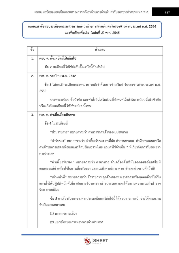 – แนวข้อสอบระเบียบกระทรวงการคลังว่าด้วยการจ่ายเงินค่ารับรองชาวต่างประเทศ พ.ศ. 2536 และที่แก้ไขเพิ่มเติม (ฉบับที่ 2) พ.ศ. 2545
