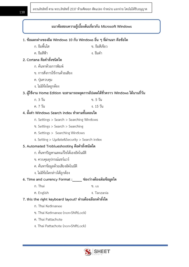 – แนวข้อสอบการใช้คอมพิวเตอร์ Microsoft Windows