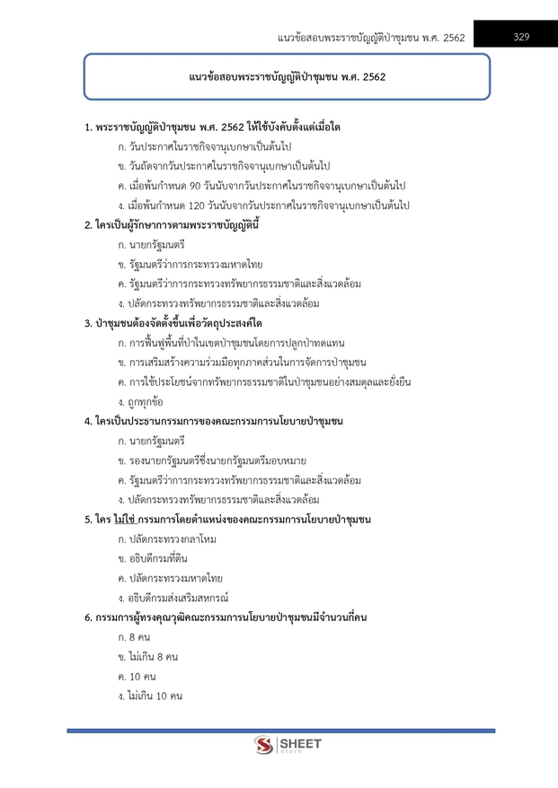 – แนวข้อสอบพระราชบัญญัติป่าชุมชน พ.ศ. 2562