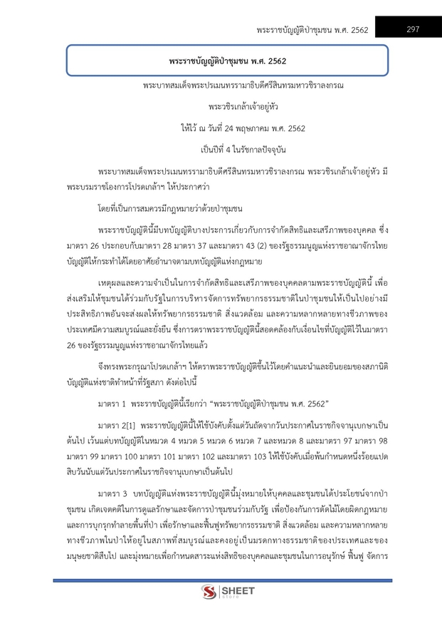 – พระราชบัญญัติป่าชุมชน พ.ศ. 2562