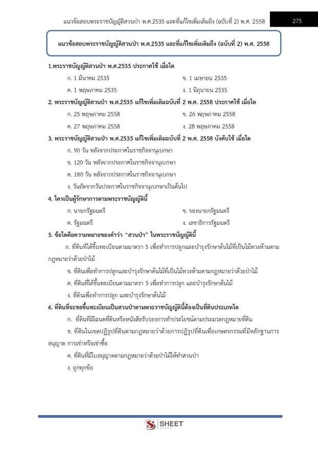 – แนวข้อสอบพระราชบัญญัติสวนป่า พ.ศ.2535 และที่แก้ไขเพิ่มเติมถึง (ฉบับที่ 2) พ.ศ. 2558