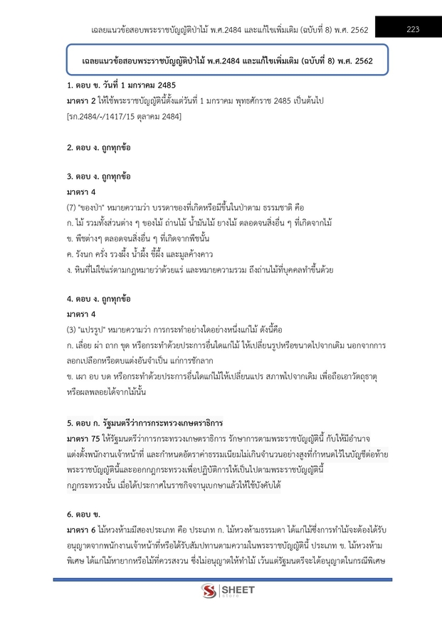 – แนวข้อสอบพระราชบัญญัติป่าไม้ พ.ศ. 2484 และแก้ไขเพิ่มเติม (ฉบับที่ 8) พ.ศ. 2562