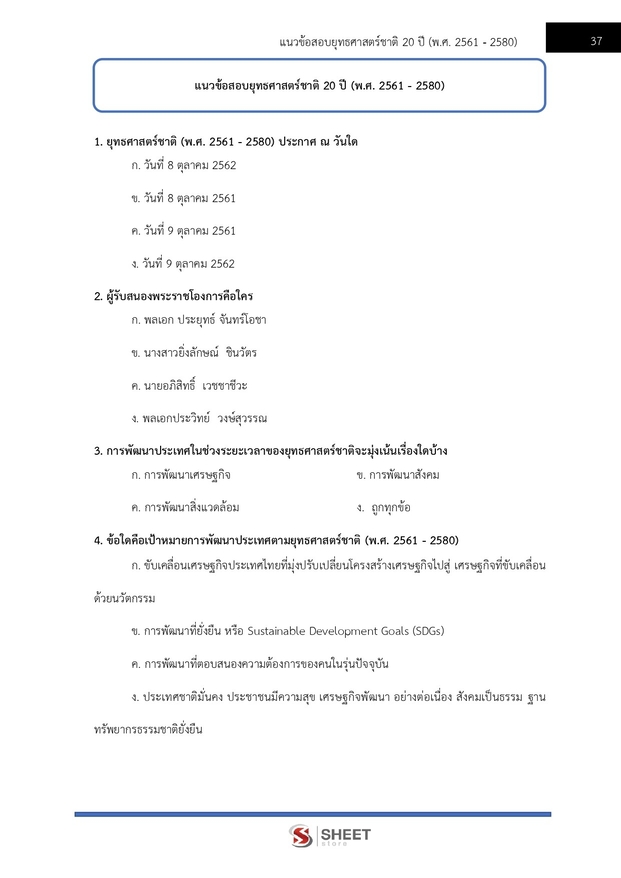 – แนวข้อสอบยุทธศาสตร์ชาติ 20 ปี (พ.ศ. 2561 – 2580 ฉบับย่อ)